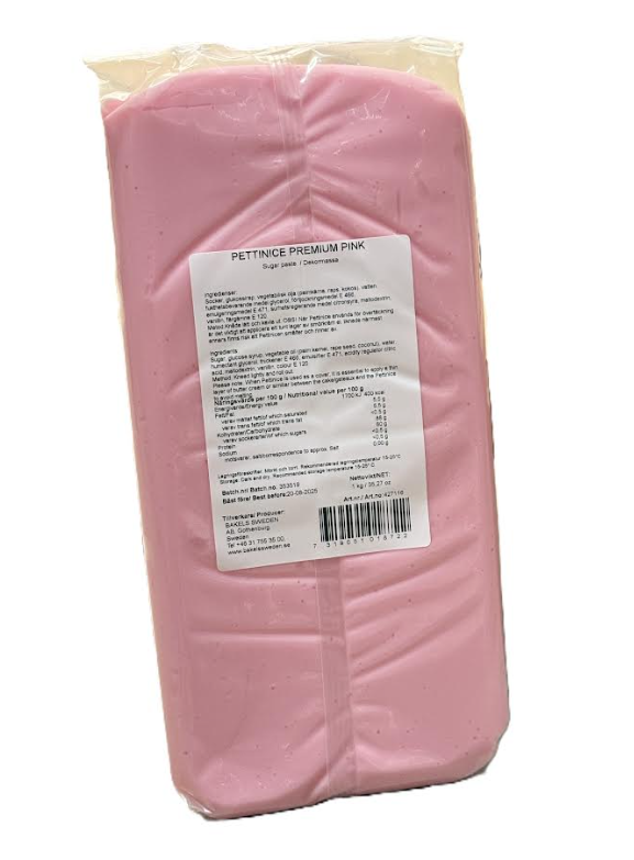Różowa masa cukrowa Pettinice marki Bakels, przeznaczona do profesjonalnego dekorowania i modelowania tortów. Charakteryzuje się gładką konsystencją, łatwością wałkowania oraz elastycznością, co pozwala tworzyć estetyczne pokrycia i precyzyjne ozdoby cukiernicze. Idealna dla cukierników i miłośników domowego wypiekania.